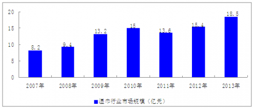 2007-2013年我國濕巾行業市場規模情況