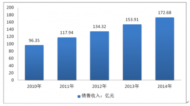 2014年全國黃酒制造業實現銷售收入172.68億元,實現同比增長12.89%; 2014年我國黃酒行業銷售額增幅約8%,凈利潤增幅約10%。