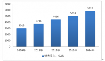 2010-2014年我國白酒行業銷售收入(億元)
