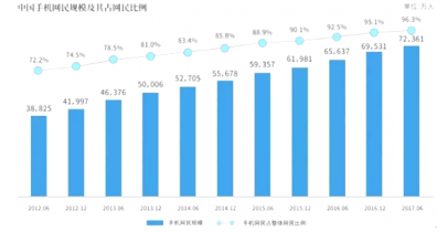 2012-2017年中國手機網民規模及其占網民比例