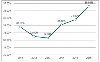 2016年中國(guó)連鎖藥店百?gòu)?qiáng)銷售額達(dá)1,235億元,占零售藥店市場(chǎng)總規(guī)模的36.6%,反映出中國(guó)連鎖藥店集中度水平仍較低,行業(yè)整合空間很大。