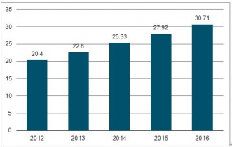 圖表3:2014-2017年全球機(jī)動(dòng)車檢測(cè)站行業(yè)市場(chǎng)規(guī)模