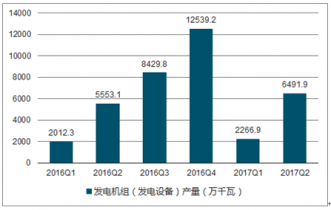 2019年1-6月中國(guó)發(fā)電機(jī)組(發(fā)電設(shè)備)銷(xiāo)售量累計(jì)為6491.9萬(wàn)千瓦,同比增長(zhǎng)16.91%。2016年中國(guó)發(fā)電機(jī)組(發(fā)電設(shè)備)銷(xiāo)售量累計(jì)為12539.2萬(wàn)千瓦。