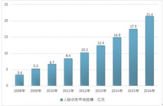 2008-2016年中國中國人臉識別市場規(guī)模情況