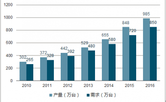 2015年我國卡式爐行業產量為848萬臺,國內銷量為720萬臺;2016年我國卡式爐行業產量為985萬臺,國內銷量為850萬臺;近幾年我國卡式爐行業產銷量情況如下圖所示: