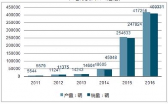 2012-2016年中國純電動汽車產銷量走勢