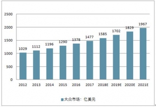 2012年至2016年,全球牛仔成衣市場的零售價值按復合年增長率8.2%增加,2016年總規模達4274億美元。全球大眾牛仔成衣市場的零售價值由2012年的1029億美元增加至2016年的1378億美元,復合年增長率為7.6%。全球中高端牛仔成衣市場的零售價值由2012年的1226億美元增加至2016年的1700億美元,復合年增長率為8.5%。全球奢侈品牛仔成衣市場的零售價值由2012年的863億美元增加至2016年的1196億美元,復合年增長率為8.5%。預計2019年全球大眾市場牛仔成衣零售額將達1585億美元,中高端牛仔成衣將達1980億美元,奢侈牛仔成衣則為1394億美元。