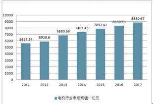 2019年我國電機行業市場規模約8850.67億元,同比2016年的8330.13億元增長了6.25%,