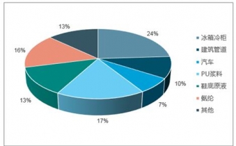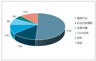 我國MDI主要應用于冰箱冷藏、建筑、漿料和鞋底原液等方面,其中聚合MDI大部分用于冰箱冷柜和建筑、汽車;純MDI大部分用于PU漿料、鞋底原液和氨綸。