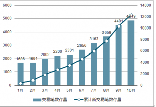 2019年前10個月場外期權的交易筆數的存量和新增量均增長較快,截止10月末存量筆數為4849筆,累計新增交易筆數達到了12269筆,其中6月-10月每個單月的新增筆數均超過1000筆,9月份達到了2555筆。