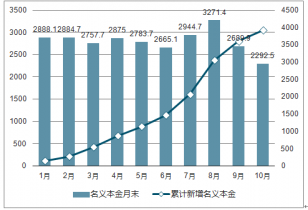 截止到2019年10月末,當前場外期權存量業務的名義本金為2293億元,全年每月的存量值在2200-3300億元的范圍浮動。