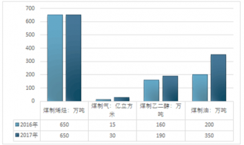 2017年底我國部分現代煤化工產品產量統計