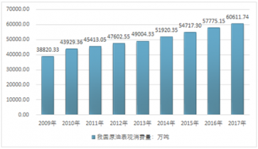 2009-2017年我國原油需求量走勢圖