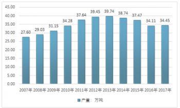 2007-2017年我國原煤產量走勢圖