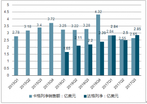 2015 年- 2017年各季度的卡格列凈與達格列凈銷售額