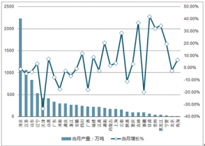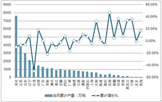2019年4月全國各省市鋼材當月產量及增長