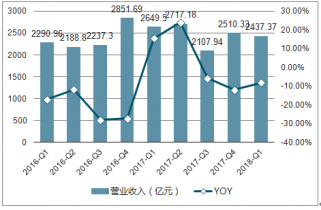2016Q1-2018 年 1 季度上市商業貿易企業營業收入收入及增速走勢