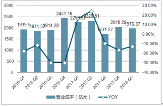 2016Q1-2018 年 1 季度上市商業貿易企業營業成本及增速走勢