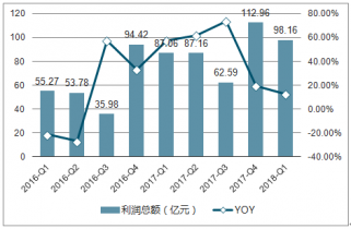 2016Q1-2018 年 1 季度上市商業貿易企業利潤總額及增速走勢