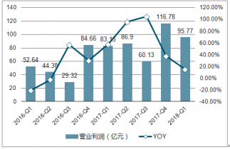 2016Q1-2018 年 1 季度上市商業貿易企業營業利潤及增速走勢