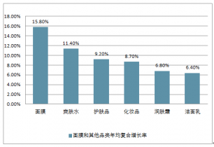 2010-2018年面膜和其他品類年均復合增長率走勢