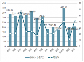 2017年1-11月湖南省各市州旅游總收入及同比增長走勢