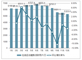 2017中國在線運動健身活躍用戶及環(huán)比增長率走勢