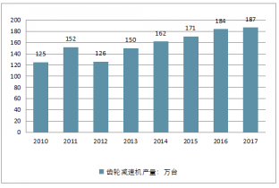 2010-2017年齒輪減速機產量情況(單位:萬臺)