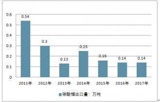 2011年-2017年國(guó)內(nèi)碳酸鋰出口量