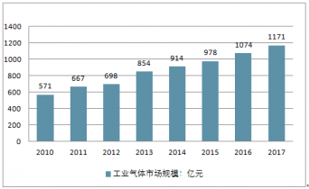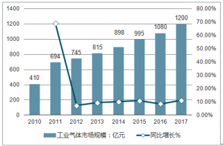2010-2017年中國工業氣體市場規模及增長走勢