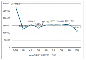 2018年10月全國電光源產量為115164.7萬只,同比下降9.86%。2018年1-10月全國電光源產量為1437925.7萬只,同比下降10.14%。