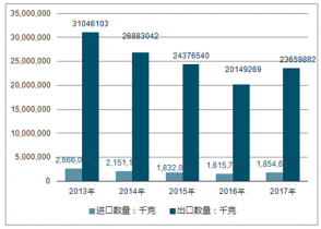 2017年我國賤金屬制鈕扣進出口數量走勢