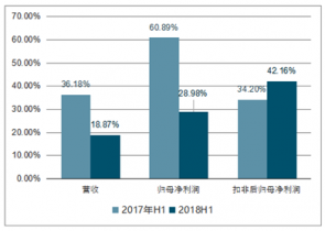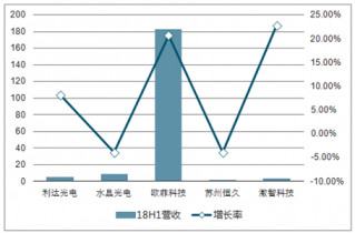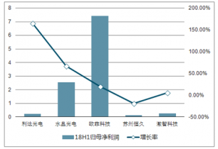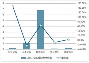 2018H1光學元件公司歸母凈利潤及增長率走勢