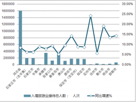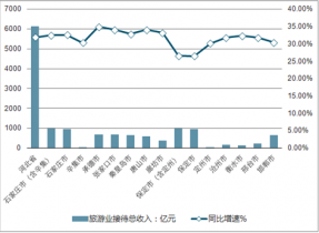 2017年,河北省旅游接待人數和旅游收入持續快速增長。2017年全省共接待海內外游客5.72億人次,實現旅游總收入6140.9億元,同比分別增長22.61%和31.93%。其中國內旅游:接待國內游客5.71億人次、實現國內旅游收入6089.6億元,同比分別增長22.66%和32.09%;入境旅游:接待入境游客160.25萬人次,實現入境旅游收入7.60億美元,同比分別增長8.57%和13.68%。