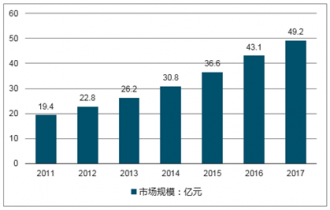 2017年我國智能水表行業銷量約2232.7萬臺,行業市場規模約49.2億元,近幾年我國智能水表行業市場規模情況如下圖所示: