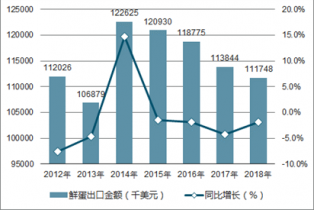 圖表:2012-2018年中國鮮蛋出口金額分析