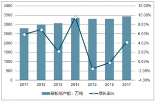2011-2017年中國箱板紙產能及產能增長率