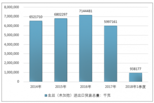 2016年我國生絲(未加捻)進出口貿易總量7144481千克,2017年進出口貿易總量5997161千克;2018年1季度進出口貿易總量938177千克。