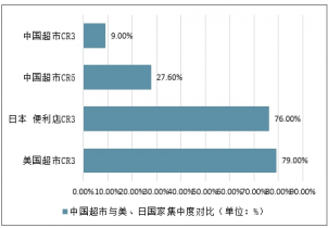 中國超市與美、日國家集中度對比(單位:%)