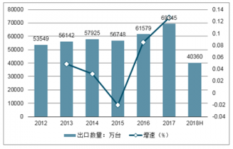 2012-2018H年中國電扇出口數量統計圖