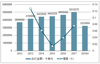 2012-2018H年中國電扇出口金額統計圖