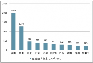 2017年全球原油日消費量前十的國家(萬桶/天)
