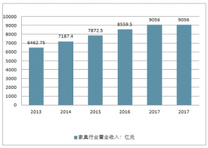2013-2017年中國家具行業營業收入走 勢