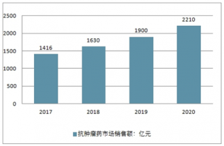 目前我國抗腫瘤藥物的銷售規模保持了年均20%左右的增速,2017年約為1410億元,預計接下來會有明顯的“以價換量”效應,對于整個抗癌藥市場來說是一個重大利好,初步預測未來抗腫瘤藥增速在15%-17%之間,到2020年或達2200億元。