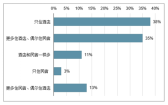 根據對主要共享平臺的調查,“只住酒店”的用戶占比約為38%,“更多住酒店、偶爾住民宿”的用戶占比約為35%,選擇“酒店和民宿一樣多”的用戶占比約11%;選擇“只住民宿”的用戶占比僅為3%,“更多住民宿、偶爾住酒店”的用戶占比也僅為13%。
