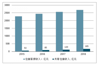 2015-2018年中國共享住宿收入及住宿客房收入走勢