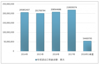 2016年我國砂紙進出口貿易總額208564686美元,2017年進出口貿易總額219039374美元;2019年1季度進出口貿易總額54469795美元。