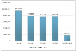 2016年我國砂紙進口總量7614746千克 ,2017年進口總量7668356千克 ;2019年1季度進口總量1721013千克 。