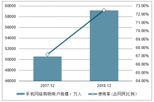 2017-2018年中國手機網絡購物用戶規模及使用率