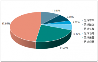經過多年的改革與發展,我國足球產業已初具規模,足球競技水平以及商業化程度亦有所提升,但產業結構仍不合理,與國外足球商業化收入結構相比存在較大差異與差距。根據清華大學的數據,足球彩票及足球用品收入比重合計占到七成,而足球賽事、足球培訓、足球傳媒、足球場地等占比過小。